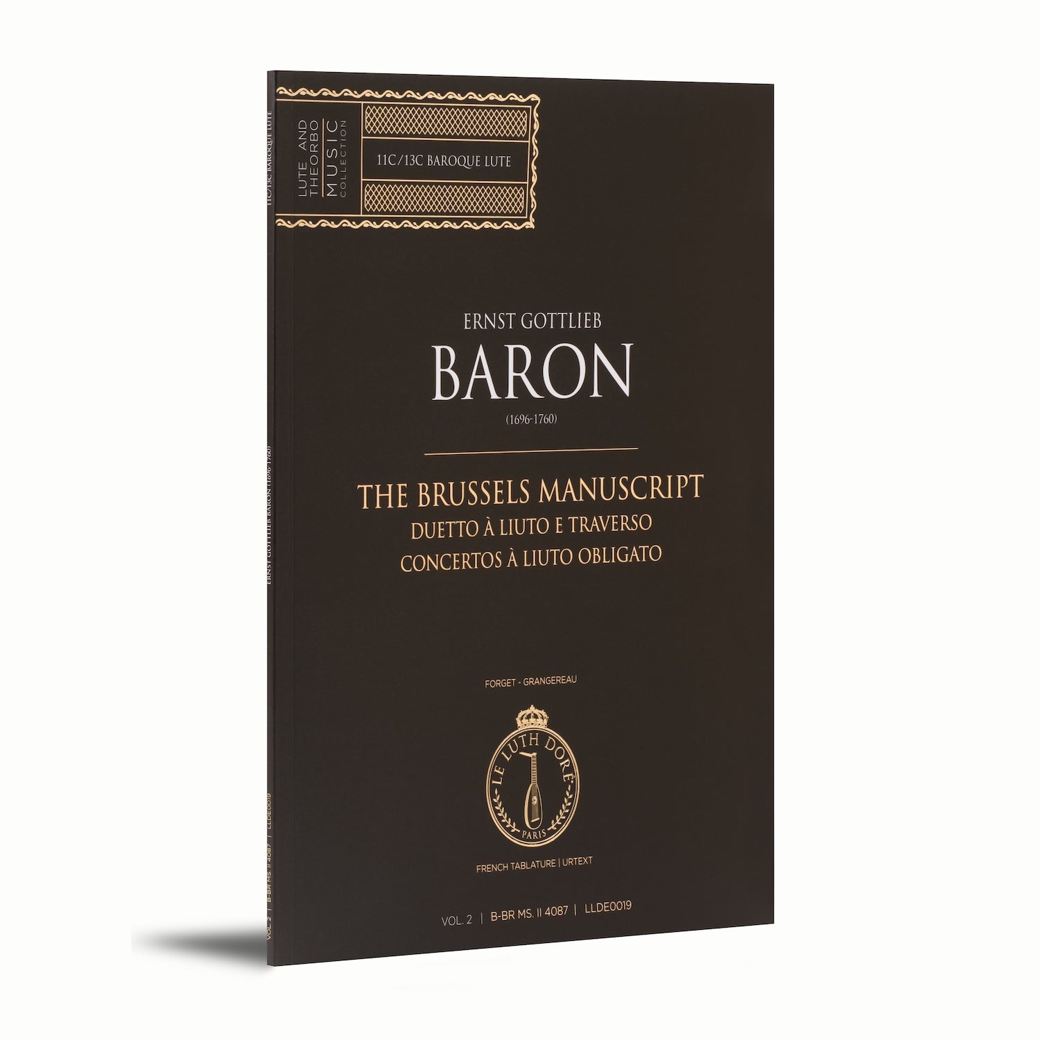 The Brussels Manuscript, conservé à la Bibliothèque royale de Belgique (KBR), contient des œuvres d’Ernst Gottlieb Baron, luthiste et théoricien du XVIIIe siècle. Commandé par l’éditeur Breitkopf vers 1760 et acquis plus tard par François-Joseph Fétis, le manuscrit comprend 10 sonates pour luth solo, un duo pour flûte et luth, ainsi que deux concertos pour violon, luth et basse continue. Certaines pièces attribuées initialement à Weiss sont désormais reconnues comme étant de Baron.