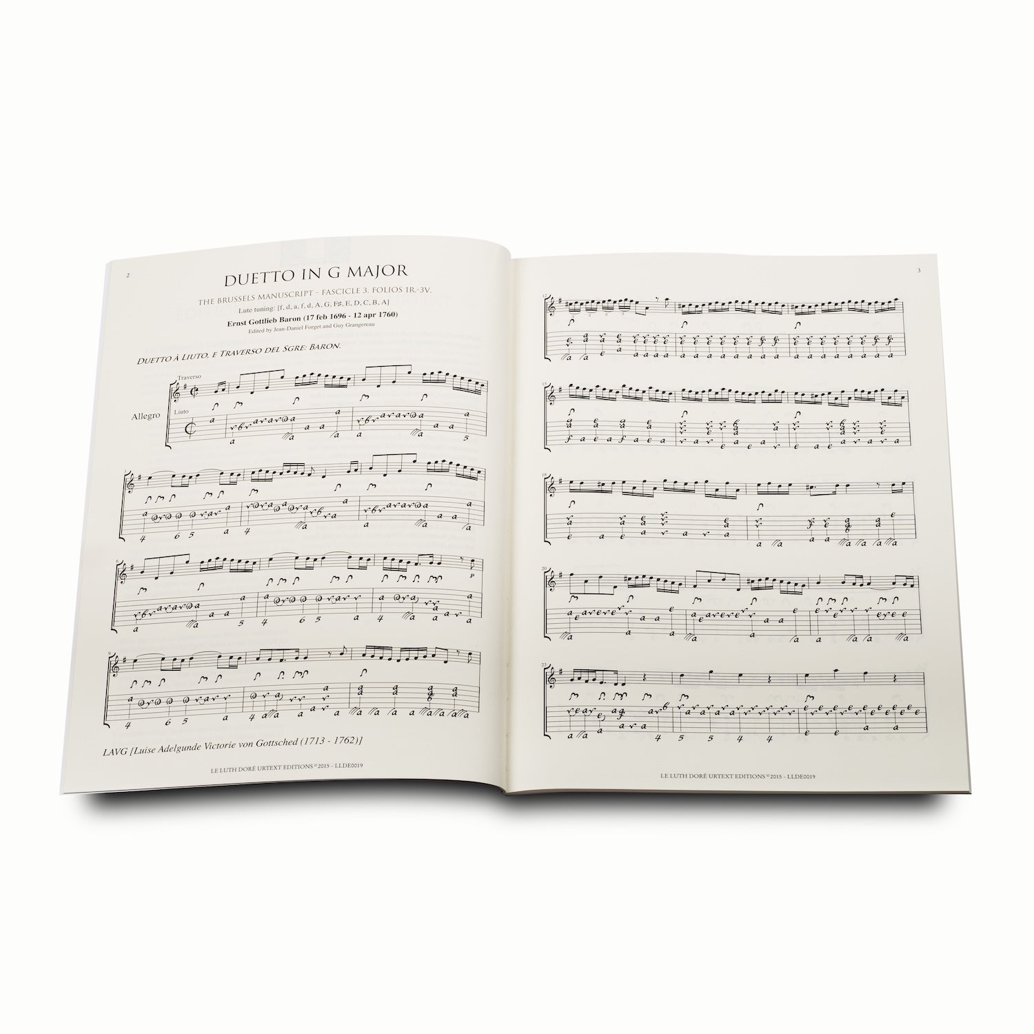 Conservé à la Bibliothèque royale de Belgique, The Brussels Manuscript contient des œuvres pour luth de Ernst Gottlieb Baron, luthiste et théoricien majeur du XVIIIe siècle. On y trouve dix sonates pour luth solo, un duo avec flûte traversière, ainsi que deux concertos avec violon, luth et basse continue, dans un style galant raffiné.