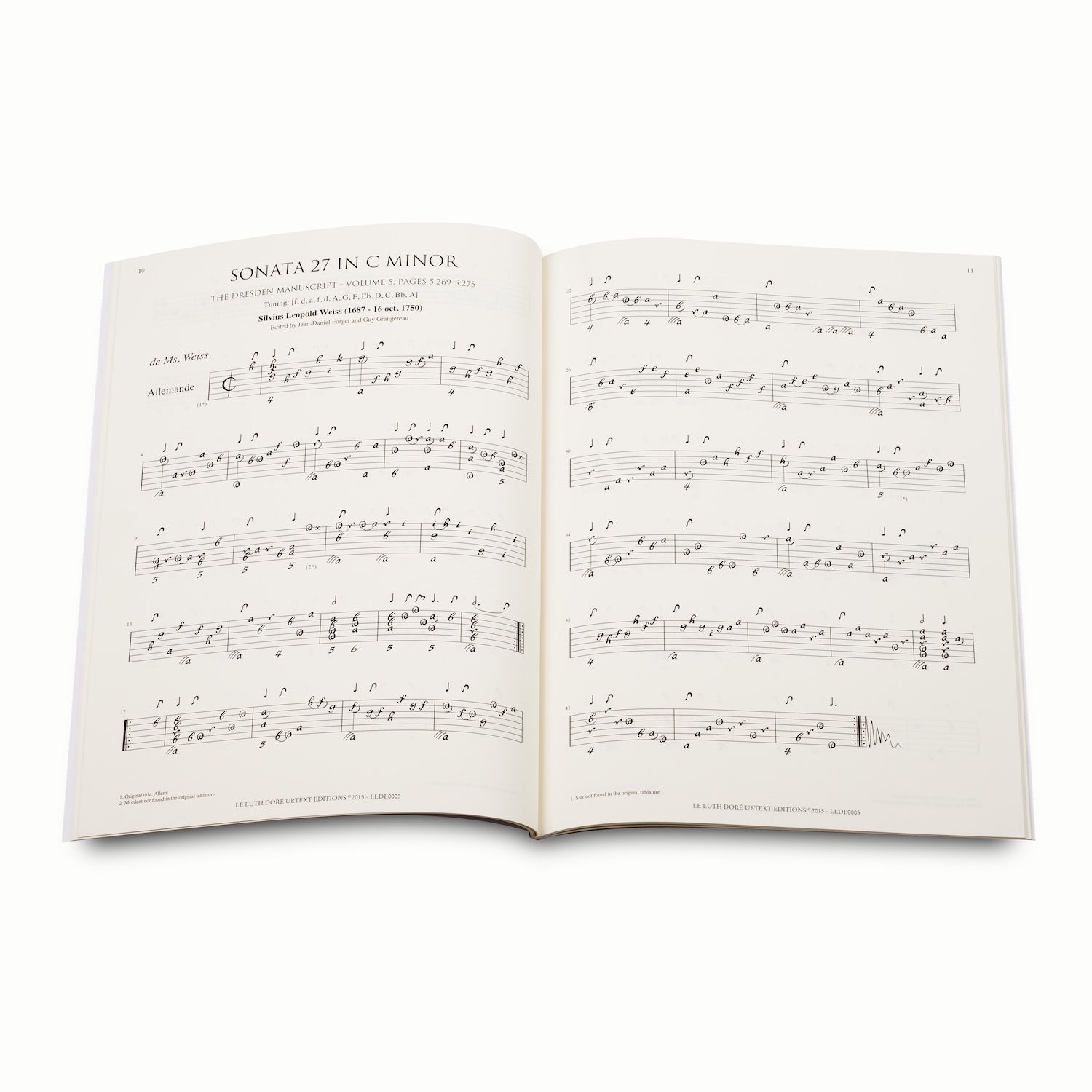 Les cinq volumes de tablature française du Dresden Manuscript, conservés à la Sächsische Landesbibliothek de Dresde, rassemblent 34 sonates de Silvius Leopold Weiss (1687–1750). Copiées avec soin et classées par tonalité, ces œuvres témoignent de l’évolution du langage pour luth baroque au XVIIIe siècle.