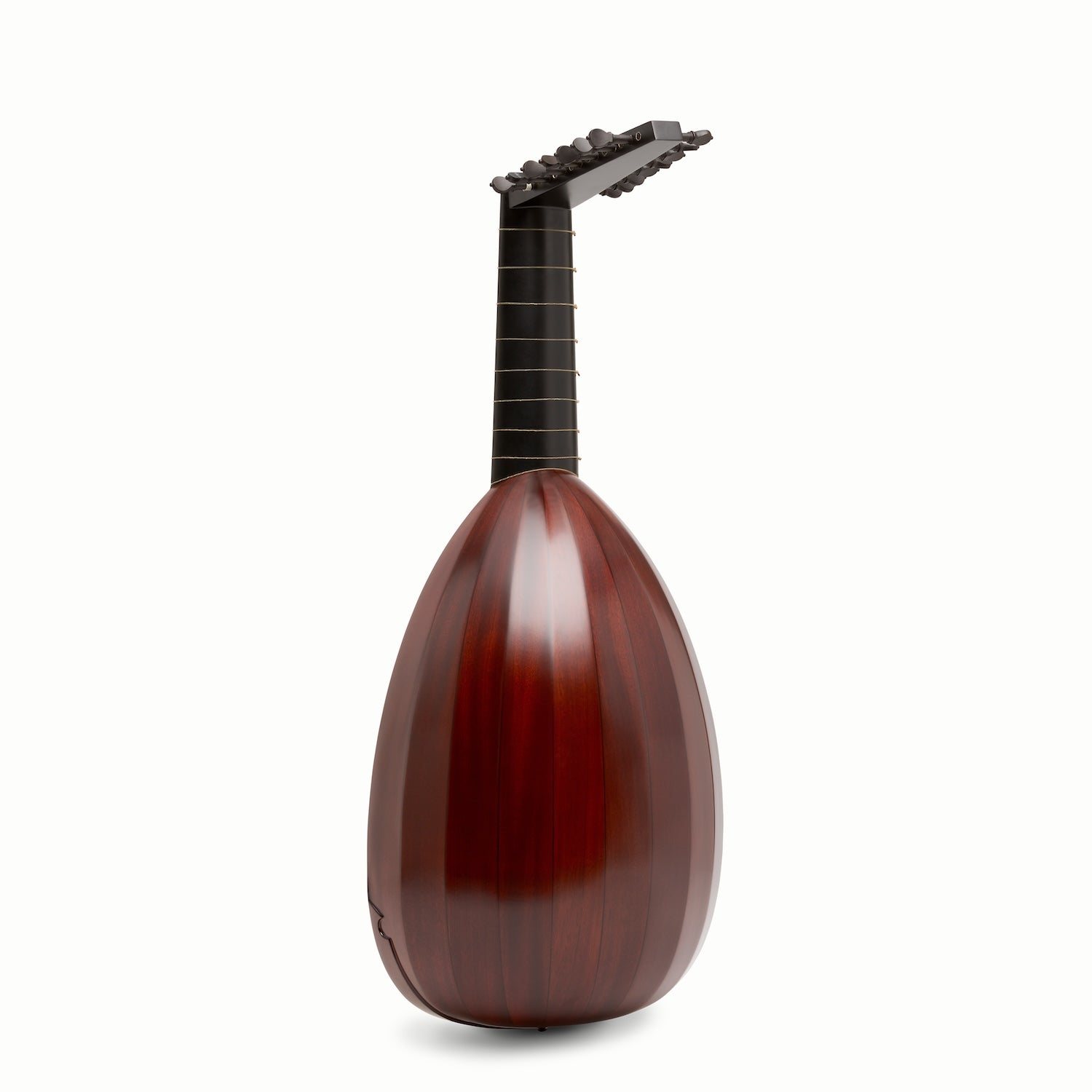 La couleur naturelle brun-rouge très foncée de notre sapelli veiné, recouverte d’une fine couche de vernis à l’huile transparent, confère à nos luths LLD® une esthétique proche de celle des luths historiques du célèbre luthier Laux Mahler du 16e siècle. En effet, ce dernier était réputé pour son vernis à l’huile brun rouge très foncé, que jusqu’à aujourd’hui aucun luthier n’a réussi à reproduire. Nous pensons que notre choix de sapelli veiné offre la teinte la plus proche de ce vernis.